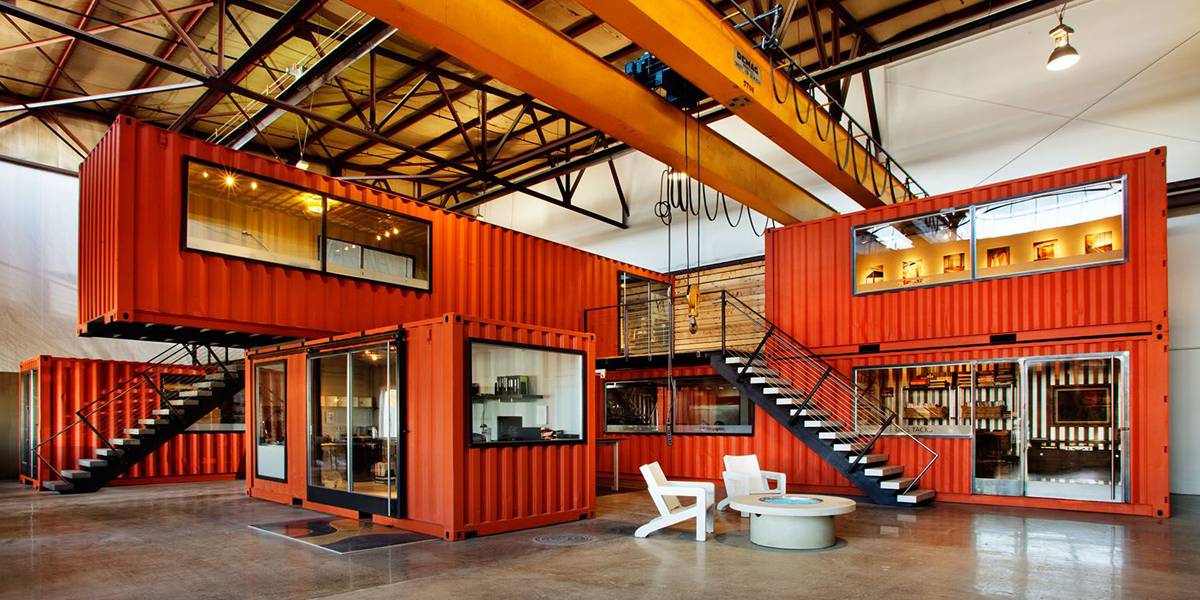 Espacio de trabajo reconvertido a partir de un contenedor marítimo.