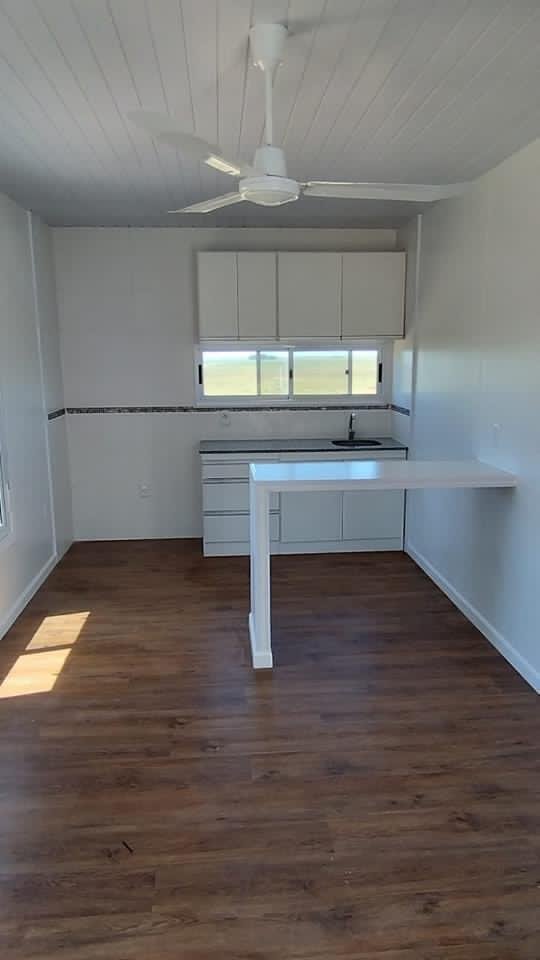 ✅ Revestimiento exterior moderno de chapa ondulada y acabados interiores de melamina y PVC.